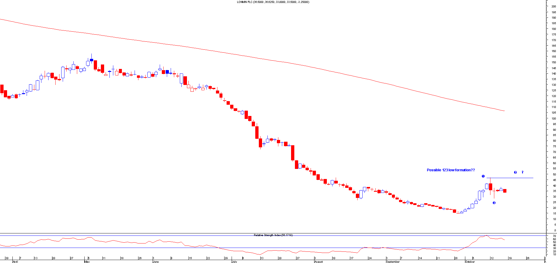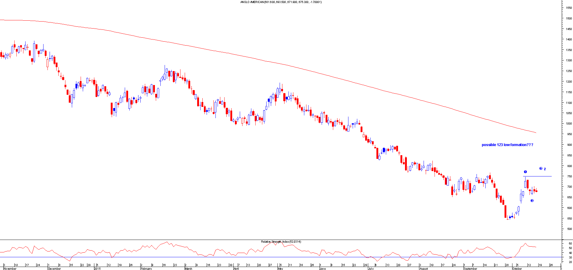 Johnson Matthey: 123 low breakout, this moved 100 points in profit then moved back down so should have been a profitable trade