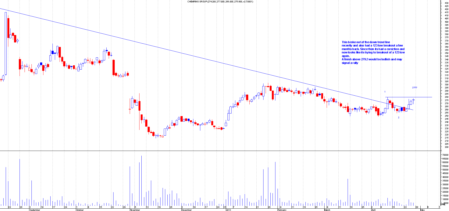 These charts are near important levels therefore some of them maybe worth trading. These charts are the ones to watch for the week ahead from 29th April to 5th may.I did see quite a few 123 low set ups but have left them out of the charts as would have had to load a lot of charts up. Ive put a few in this weeks interesting charts.