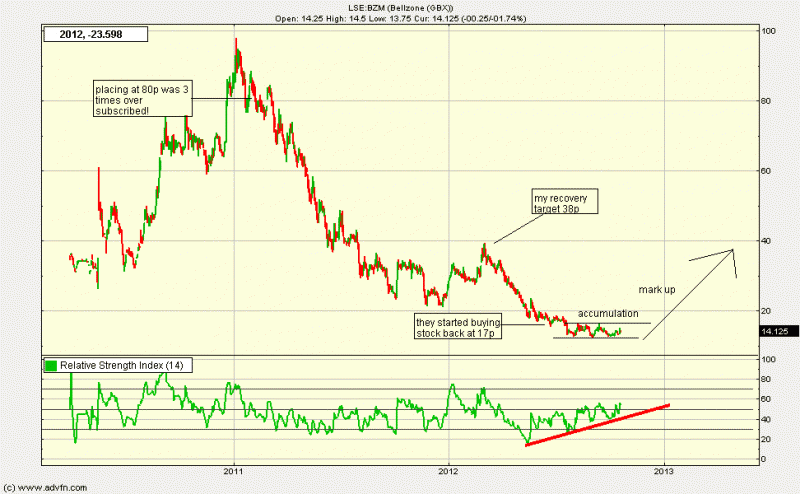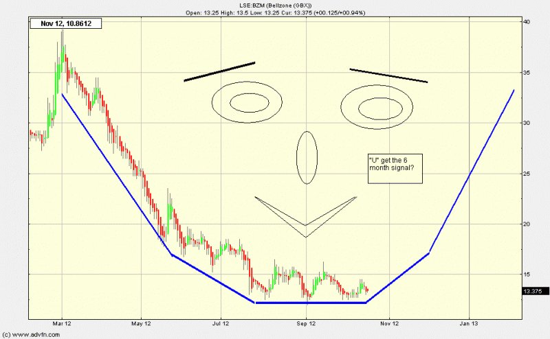 Anyway the chart clearly shows resistance at top of channel and found support at breakout "back test" area....that shows that there is no longer a cap on the downtrend, but until we see volume buying then probably too early to be ultra bullish...for now higher lows and higher highs and the bottom triangle and "U" in the making is what I'm accumulating for with 6 month target near 35p....who knows what will happen, but I do like me chart patterns! (mind only work about 50% though!)