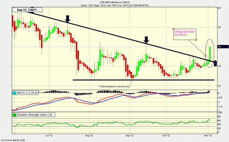for me there was no hefty volume to "confirm" the breakout....may have just been spread manipulation as I thought may be the case just before leaving this morning.....I'm bullish above 14p and would be bearish below 13.75 (12.5 retest?).....there are still volume sellers out there and many in at much higher prices and after feeling soo much pain many are looking to sell into any spike....I'm expecting that to occur at 19p and only then can this breakout in earnest..it's now above the 20 and 50 day, but this is a stubborn beast and my only view is that I think there is opportunity to accumulate whilst the seller tries to clear out.