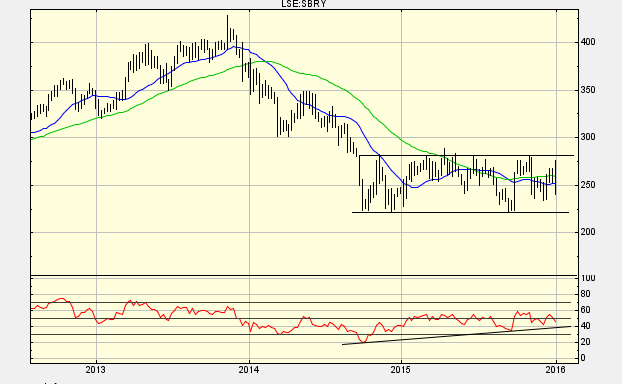 This has been in a trading range for some time. Weekly chart below.