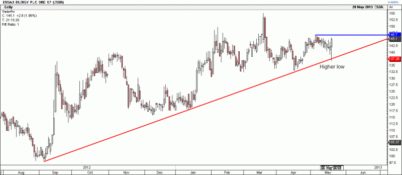 That was a really bullish candle today so we may well see that break of 146.7p soon. Stops ought to be below today's low which was 136.77p.