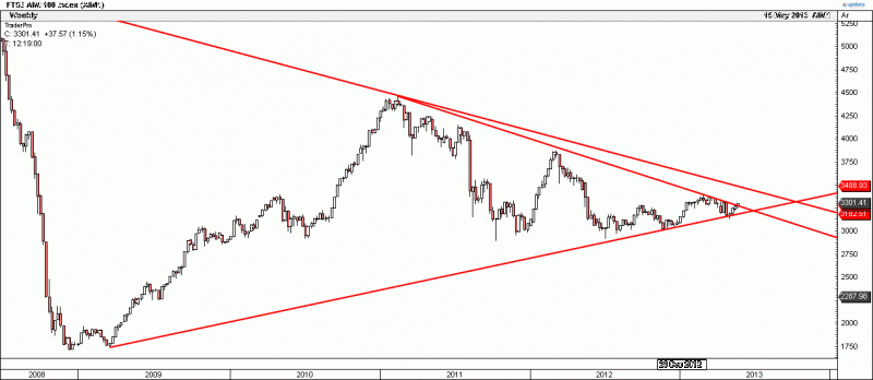 That next resistance downtrend on the long term chart comes from the 2006 all time high so we'd best not get carried away just yet.