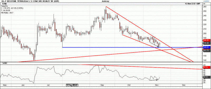 The last time there was a bullish RSI divergence on GKP's daily chart was on 11 March 2011 when the SP bounced from 111.75p. Could be an interesting next few weeks...