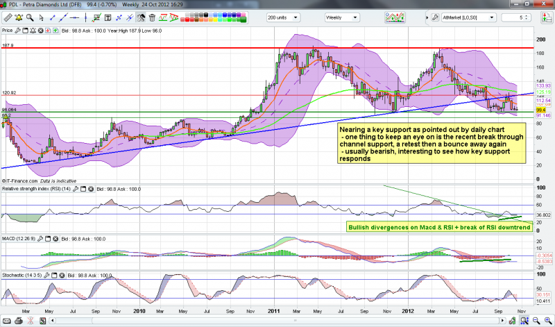 Hopefully the charts are self explanatory - but basically I feel that PDL is coming to a significant Support area, where the indicators are also lining up.